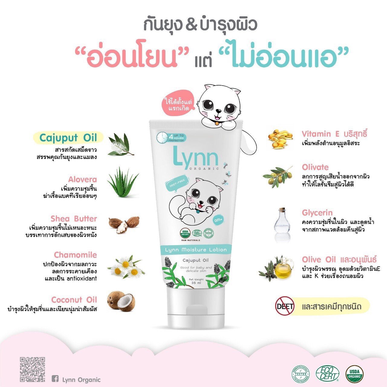 Lynn Moisture Lotion โลชั่นกันยุงและแมลง จากใบเสม็ดขาว